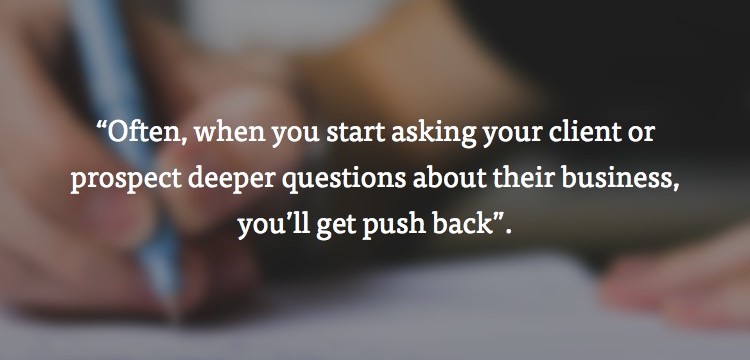 Often, when you start asking your client or prospect deeper questions about their business, you’ll get push back.