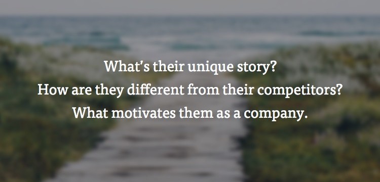 When a prospect first gets in touch with me, my goal is to better understand their business. What’s their unique story? How are they different from their competitors? What motivates them as a company.