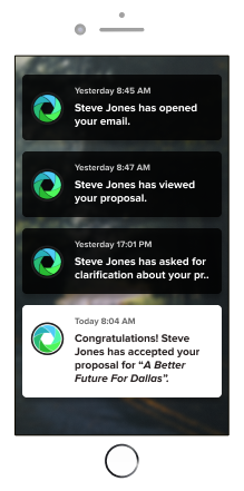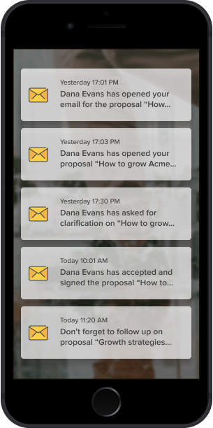 Your clients can read, accept and sign their proposal right in the browser. This is great for them and fantastic for you. Compared to traditional methods your proposals can be signed in up to 52% less time.